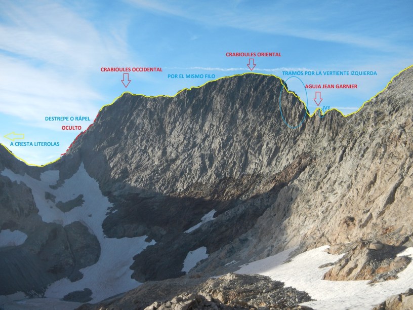 La cresta de Crabioules se encuentra enclavada al final del valle de Literola, haciendo de frontera con Francia. Se trata de una cresta bonita, aérea y con algún paso puntual de más de IIIº grado.