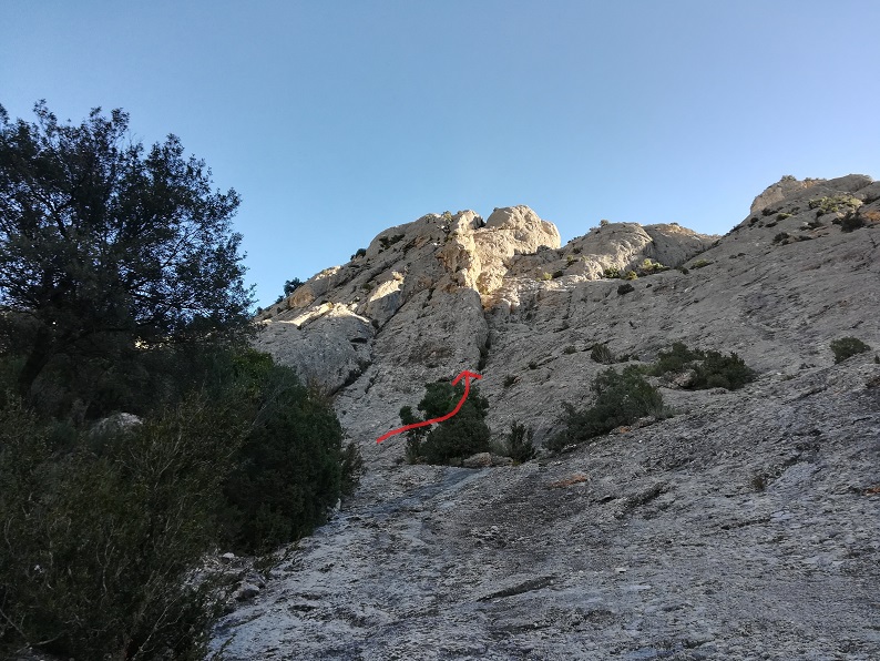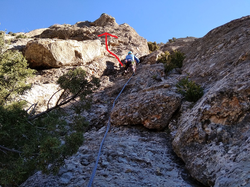 Ascenderemos al espolón y lo seguiremos hasta su final. Largo bonito.