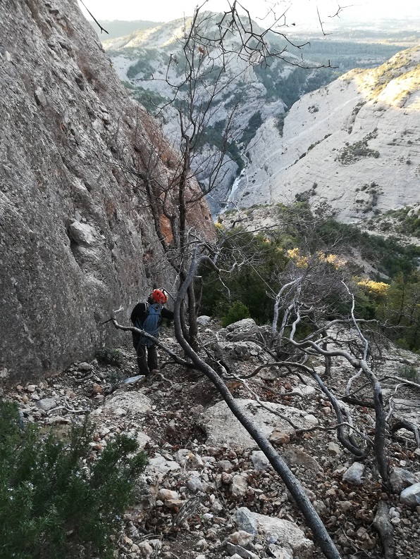 En este punto giraremos a nuestra izquierda para tomar una canal descompuesta que nos llevará hasta el camino del Estrets, desde donde tomaremos la ruta de aproximación hasta el coche.