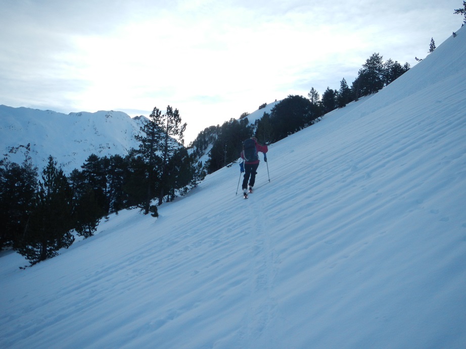 En este tramo la nieve está dura lo que nos hace tener que progresar con cuidado.