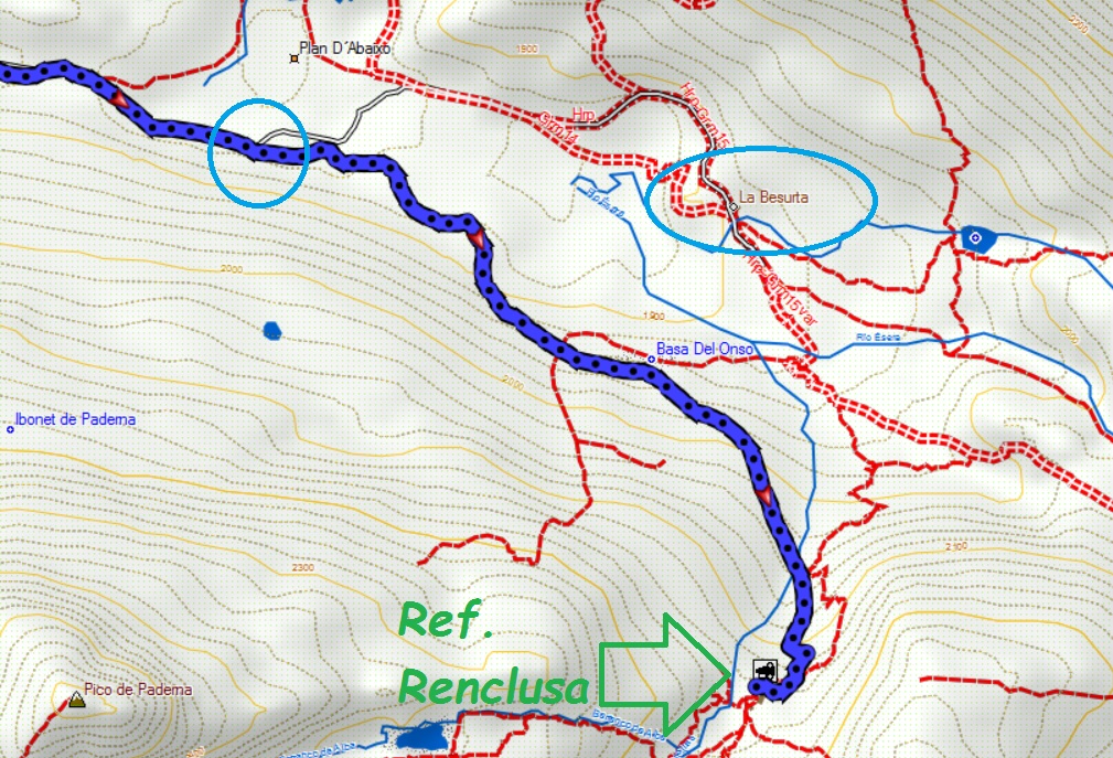Seguimos la pista de esquí hasta Pla de D’Estañ, donde gira a la izquierda de manera marcada. En este punto nos saldremos de la misma y tomaremos el camino llamado de invierno que lleva a la Renclusa sin pasar por la Besurta.