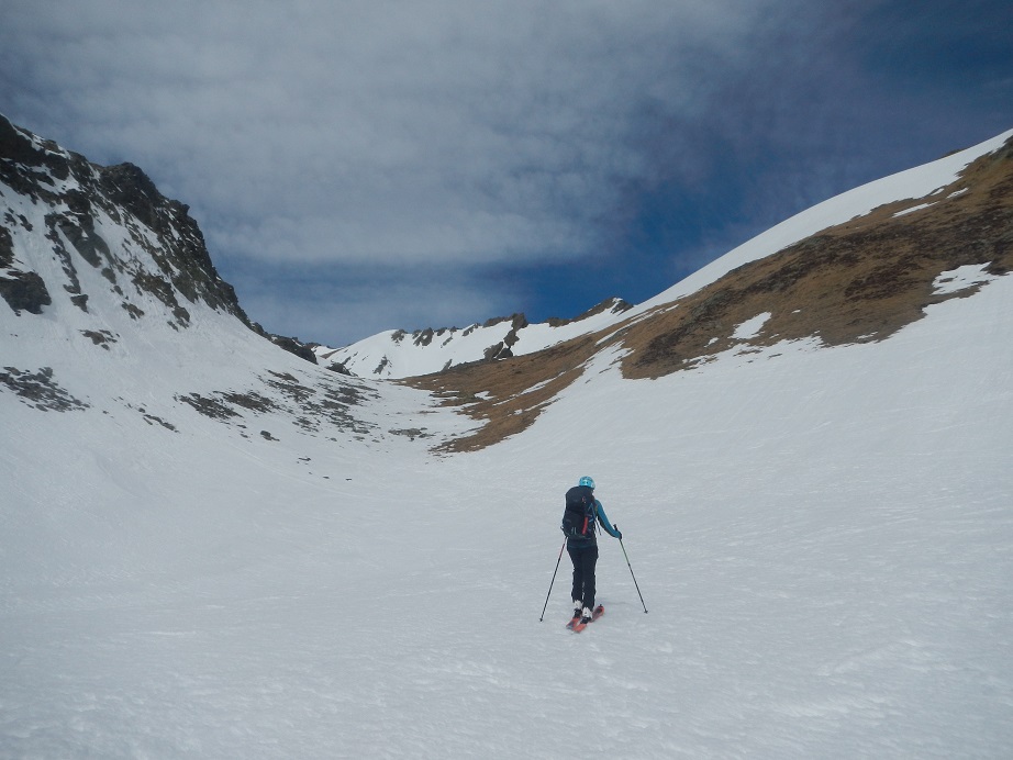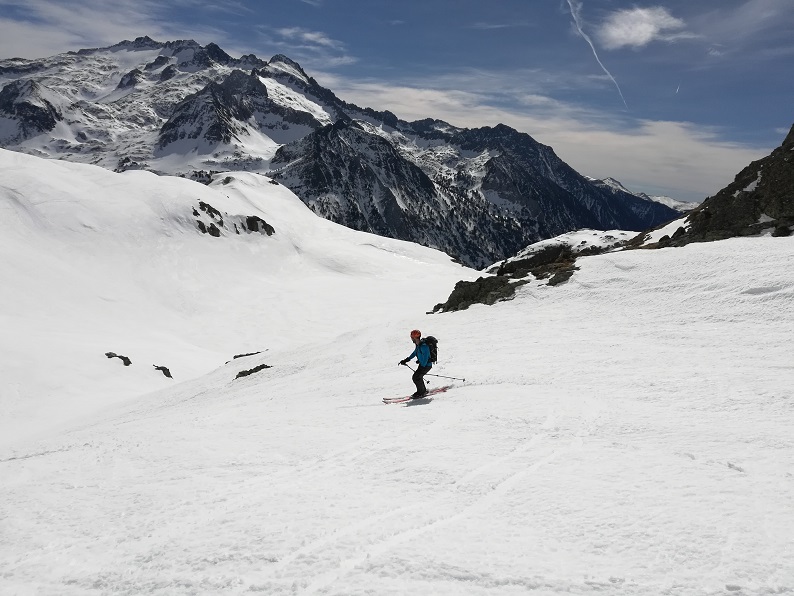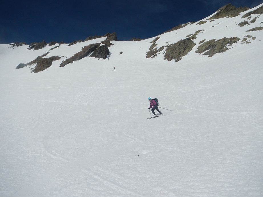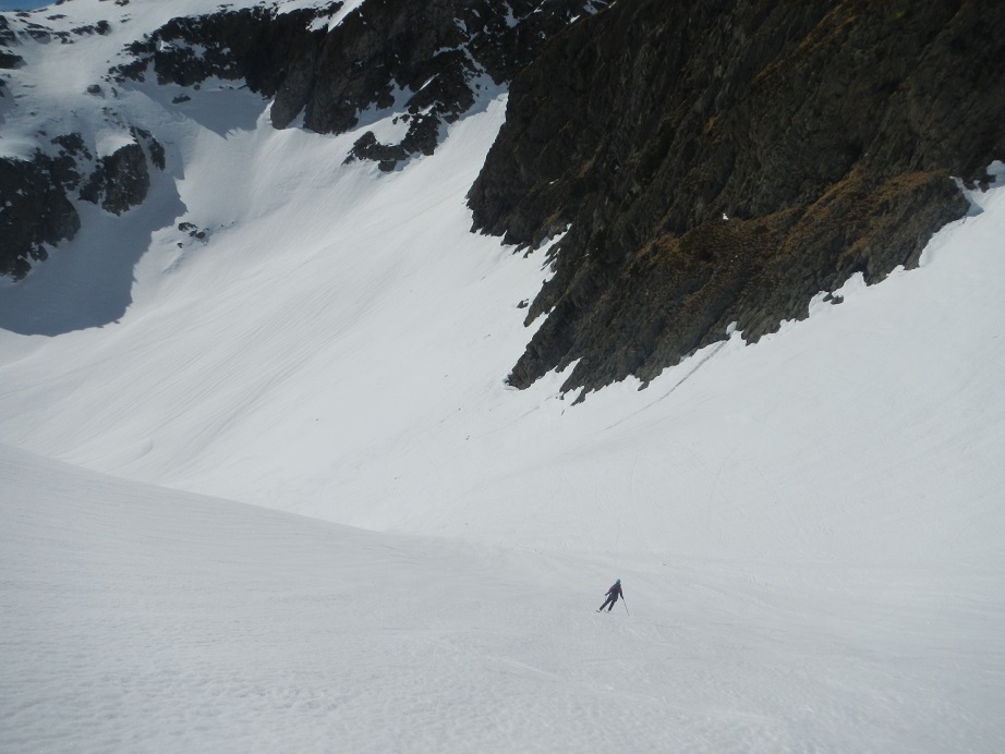 Llegaremos a una pala bastante inclinada que descenderemos, e iremos dejándonos llevar por la pendiente.