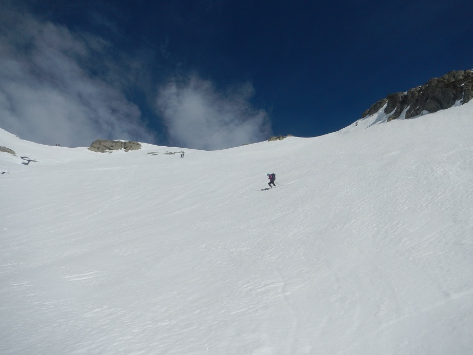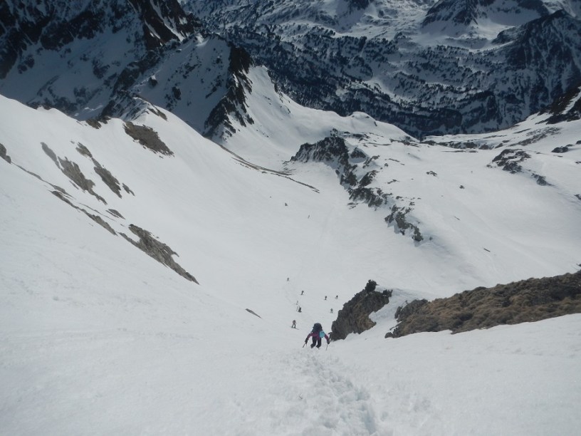 El último tramo puede llegar a los 45º. En nuestro caso hay buena nieve y buena huella.