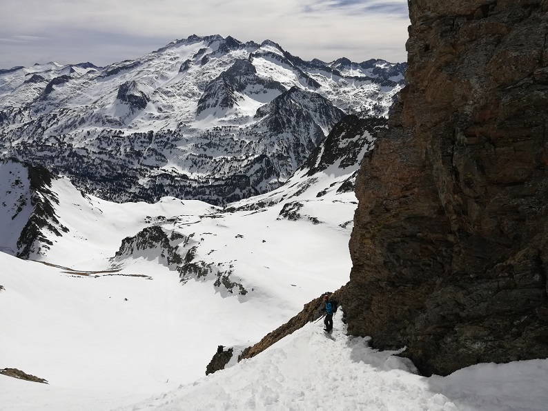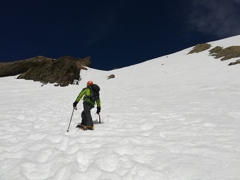 DIFICULTAD ALPINA: F+, rampas de 45º en la parte final de la pala cimera.