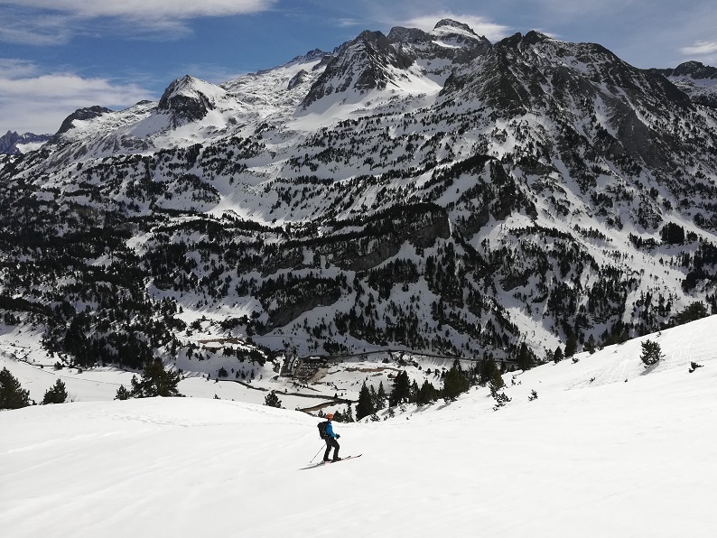Bonita ruta en el entorno de los Llanos del Hospital. Con una buena innivación podremos salir del parking con los esquís puestos.