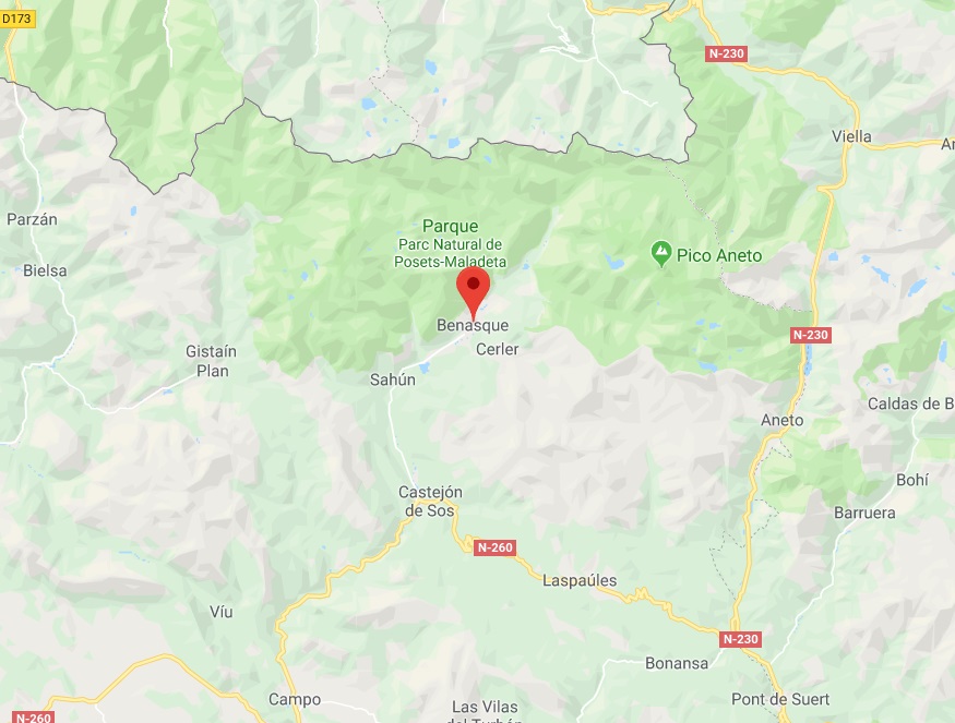 Desde el pueblo de Benasque seguiremos la carretera A-139 hasta prácticamente su final, donde encontraremos un desvío a la derecha hacia el hotel de los Llanos del Hospital.