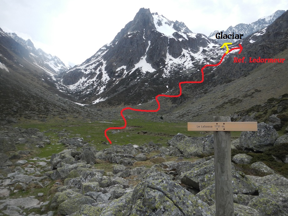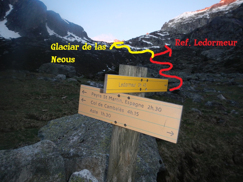 Un cartel nos indicará la dirección al refugio Ledormeur, al que no es necesario llegar.