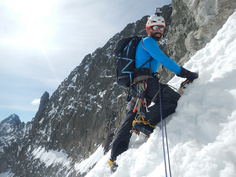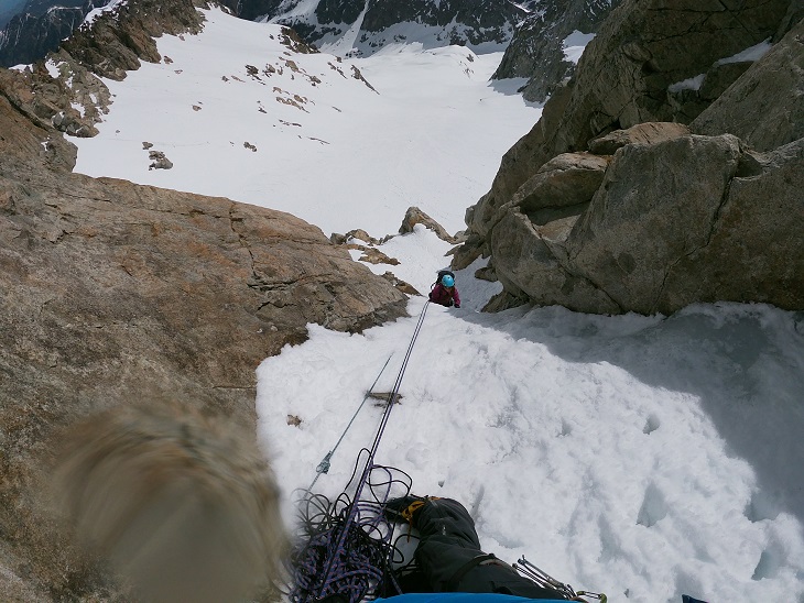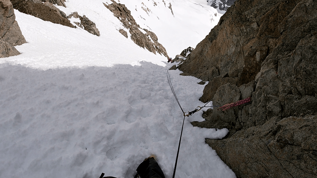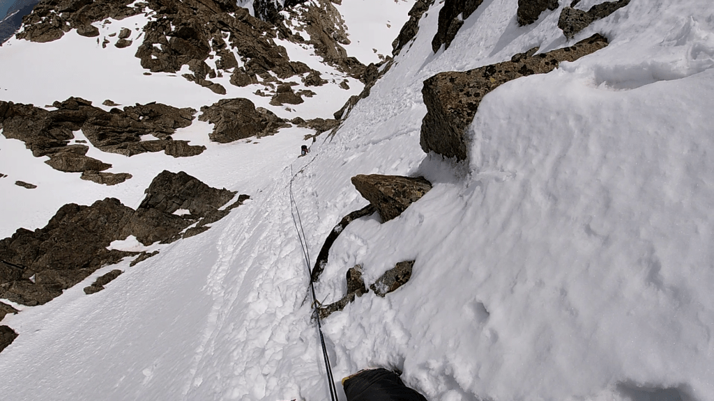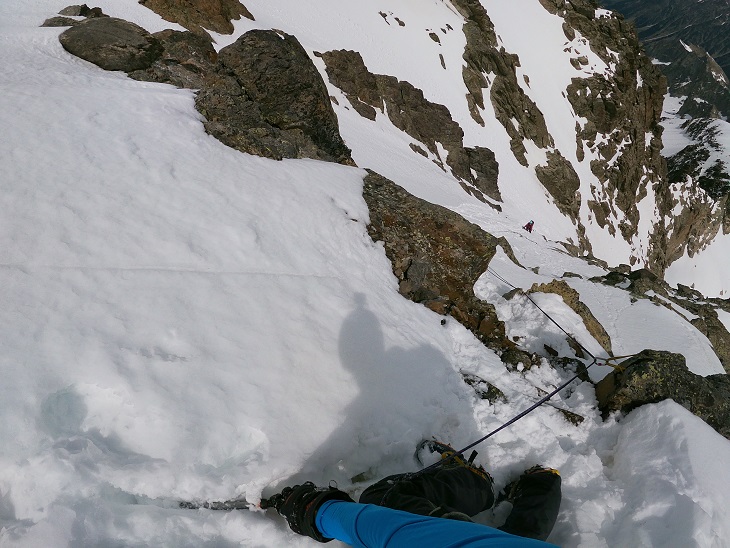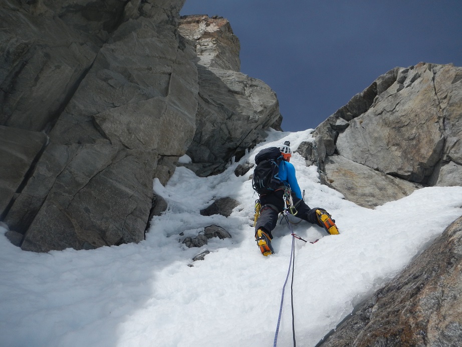 Sigue una zona menos inclinada de nieve, para llegar a otro tramo a 70º con hielo.