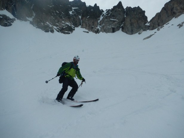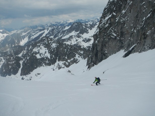 Llegaremos así a la base del corredor, donde calzaremos los esquís para descender a placer el glaciar de las Neous.