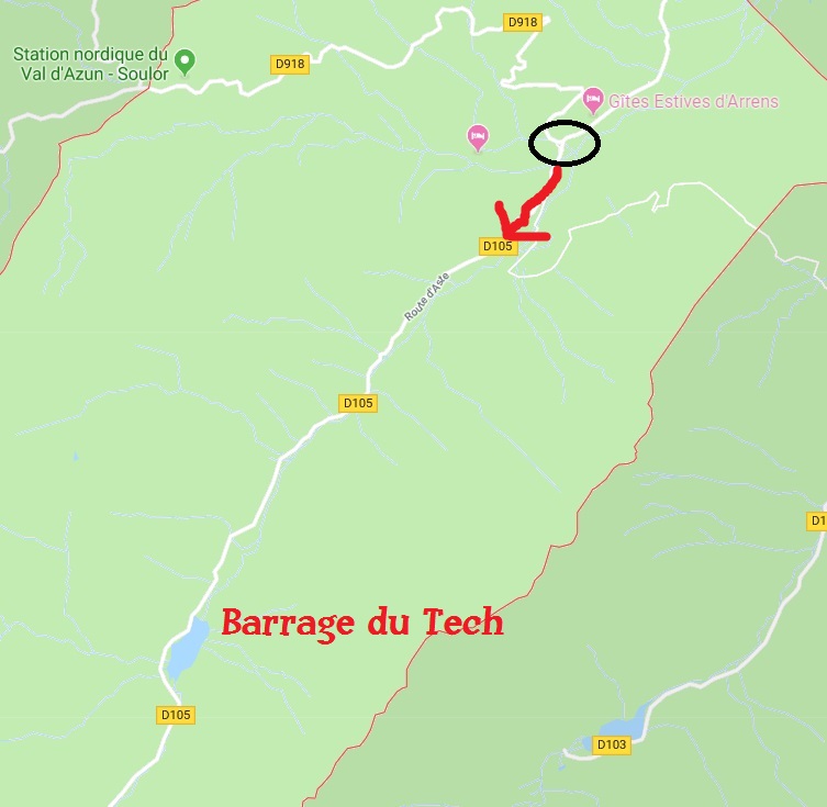 Desde aquí dejaremos la carretera general para tomar el desvío que lleva al barrage du Tech, indicado en carteles.