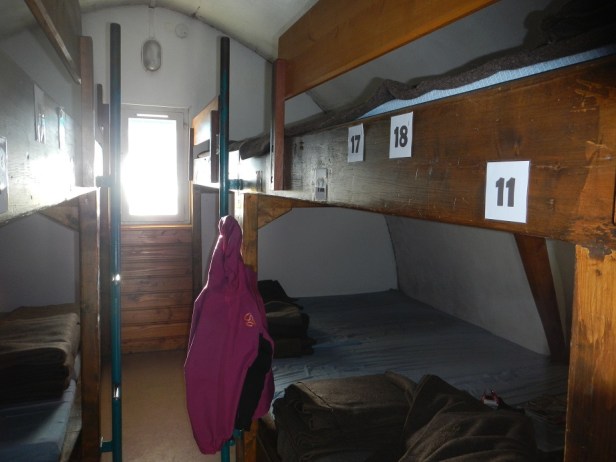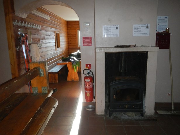 Dentro hace bastante frío. Hay un armario con leña, pero a estas alturas de temporada solo encontramos dos troncos húmedos. Prever ropa de abrigo.