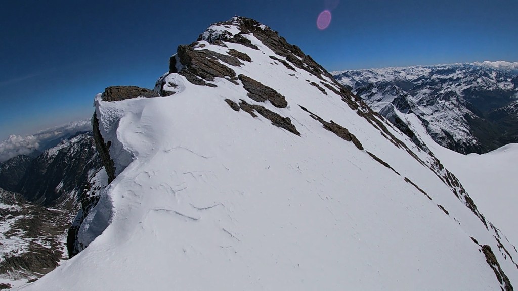 Después de superar una pala de unos 40º/45º llegamos a la bonita arista cimera.
