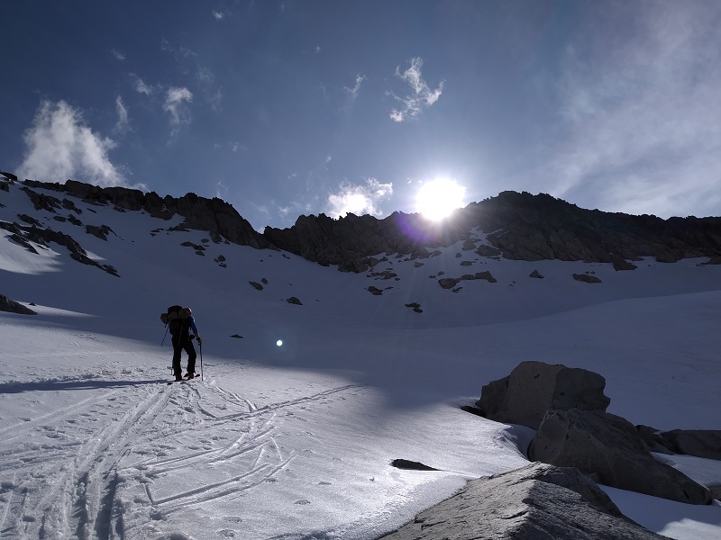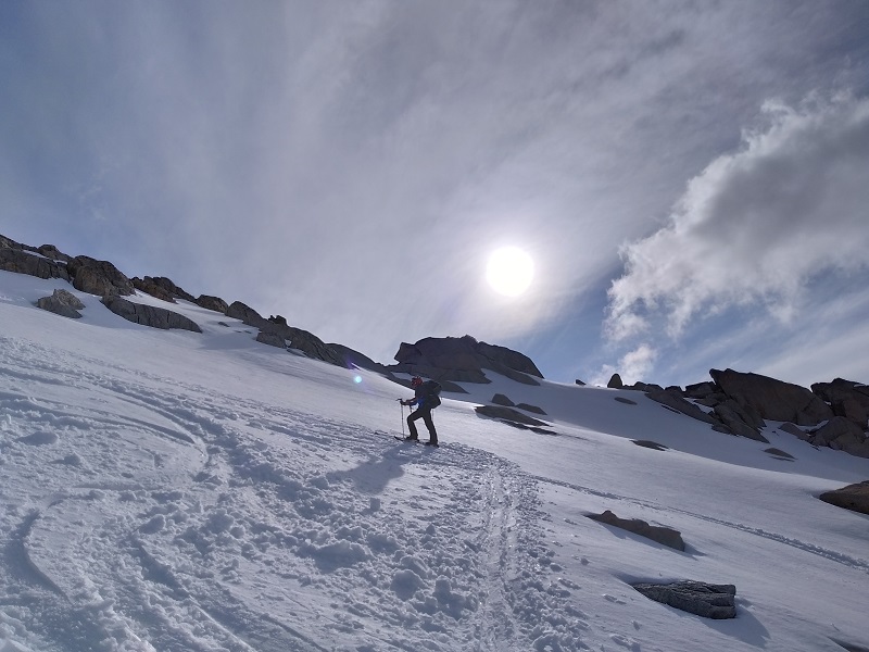 Llegaremos a la brecha Barris, donde atravesaremos una zona de bloques y a continuación, podremos calzarnos los esquís.