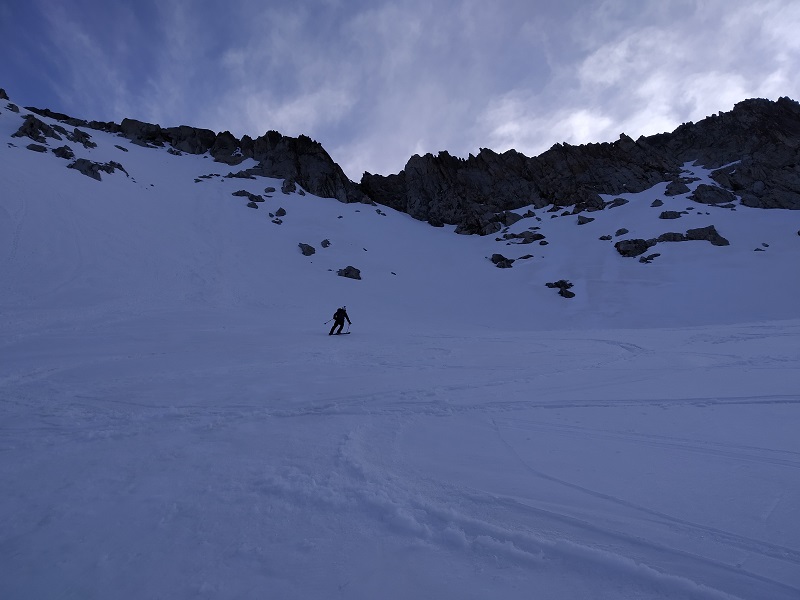 Disfrutaremos de buenas condiciones de esquí. Tendremos 600 m de desnivel hasta la brecha Barris.