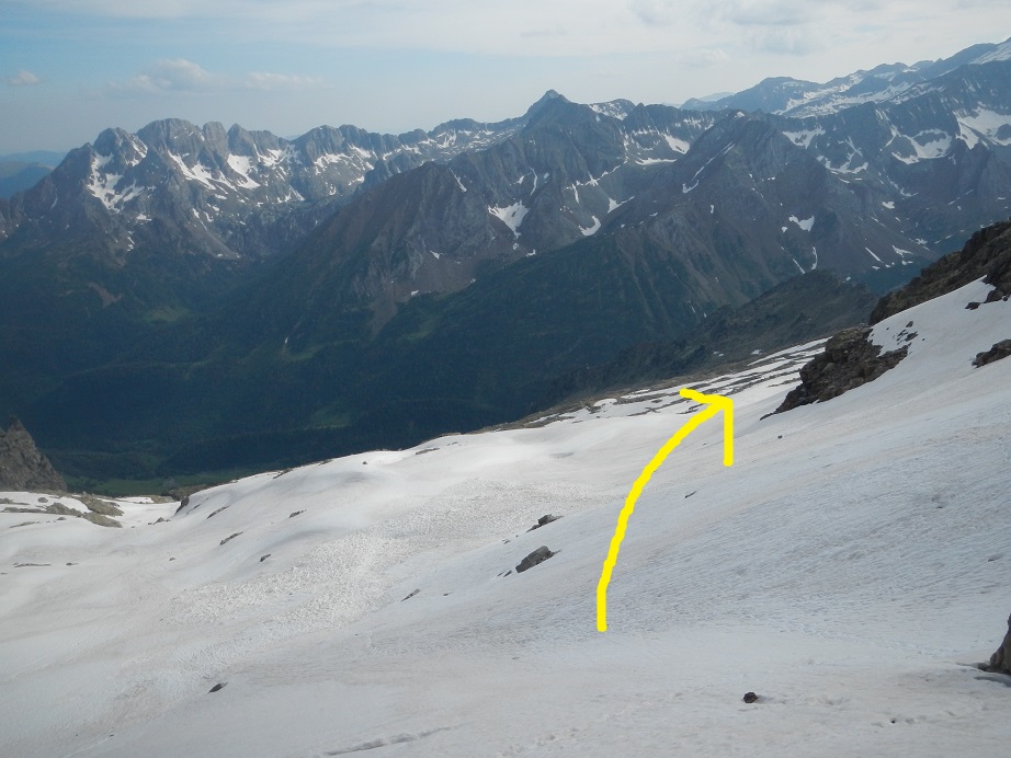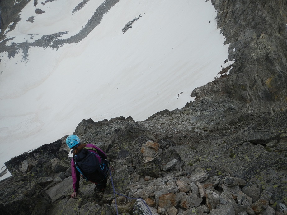 …y bajamos caminando por una incómoda pedrera, evitando el primer tramo de nieve más inclinado.