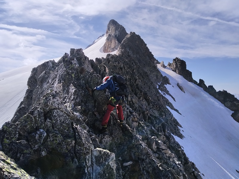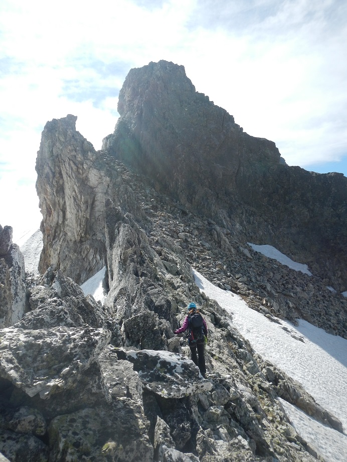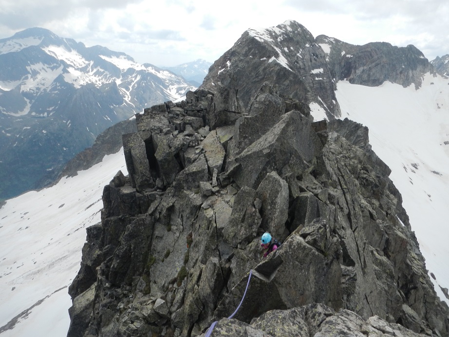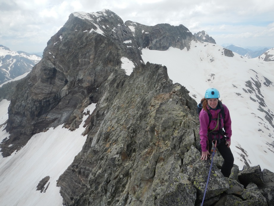 Para después descender unos metros en busca de la primera cumbre del día. A nuestra espalda el pico Jean Arlaud.