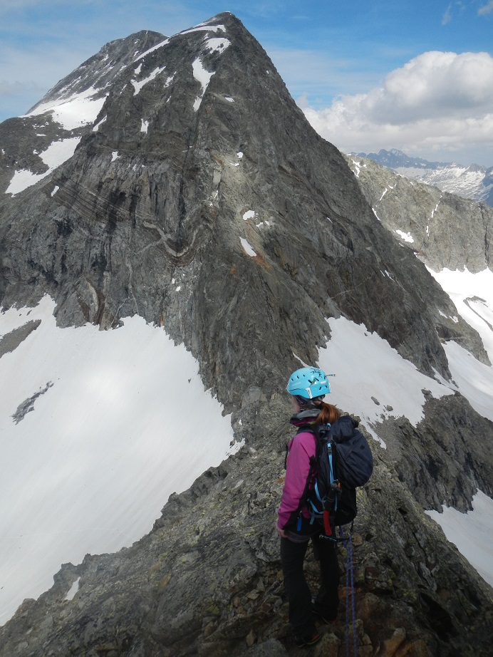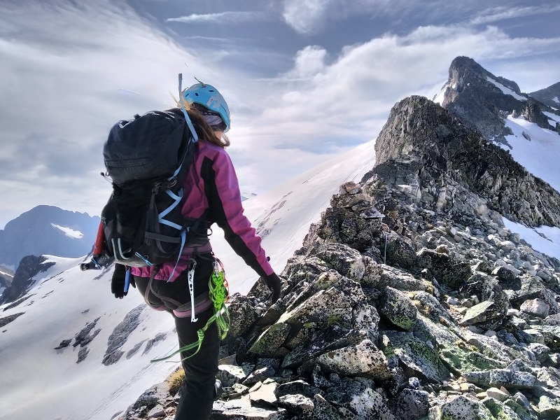 Todavía queda algo de nieve en la cresta, que hará necesarios los crampones y el piolet en algún punto.