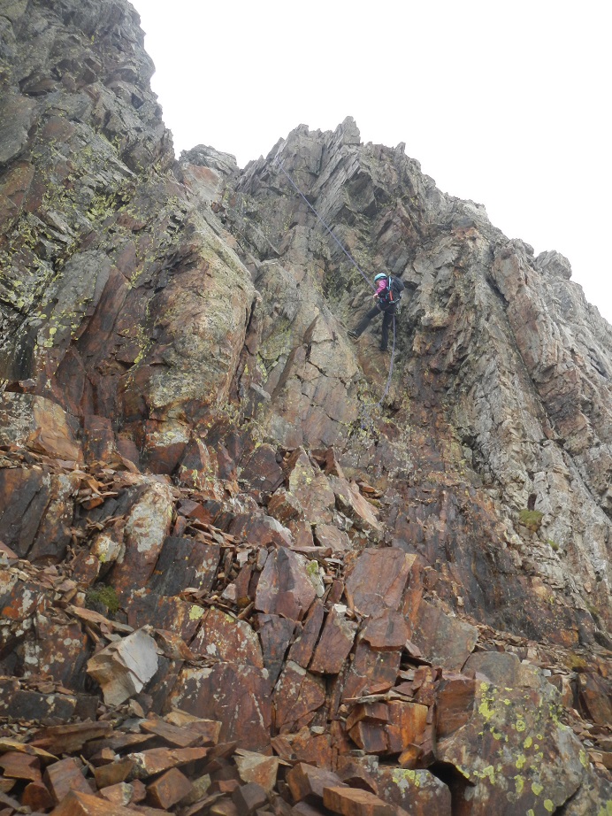Continúan las trepadas y destrepes durante un centenar de metros, IIº+.