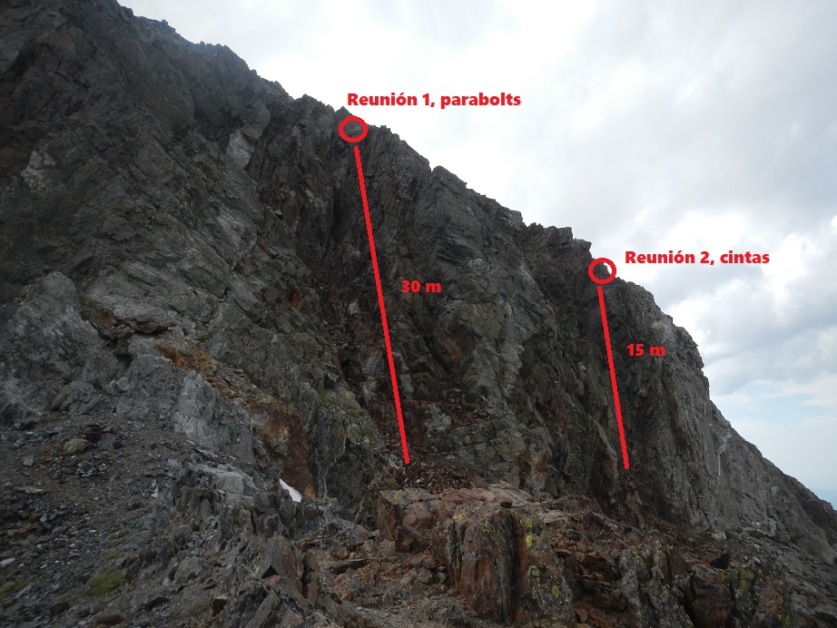 Cuando llegamos cerca del collado, existen dos instalaciones de rápel, en dos chimeneas paralelas: