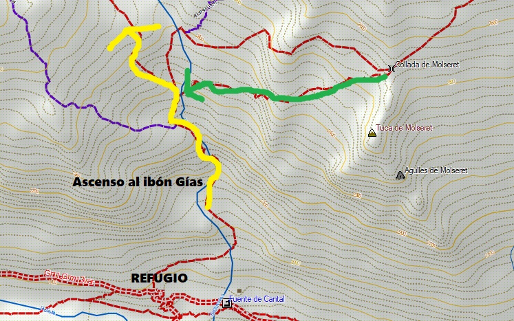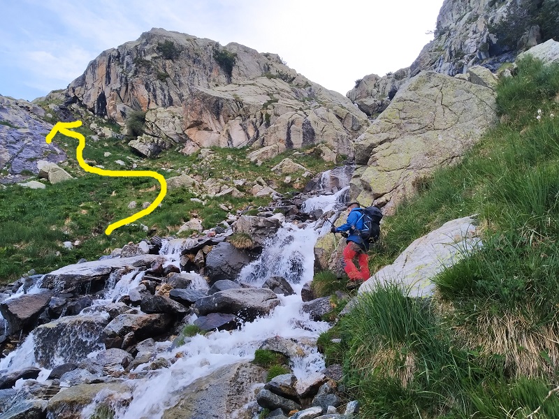 Hasta conectar con la ruta de ascenso, con la que coincidimos unos metros más arriba de donde cruzamos el río de Oo por la mañana.