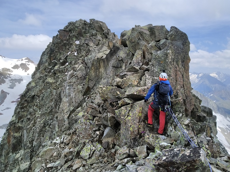 Cruzamos el paso afilado, hay un parabolt casi llegando al final. En este punto está el paso clave de la cresta. Según las reseñas IIIº+. Tiene una salida rara que tira un poco para atrás con presas muy romas.
