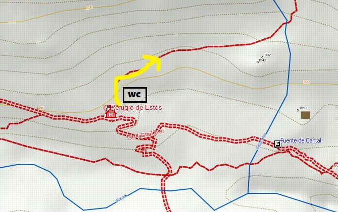 Salimos del refugio en dirección al puerto de Oo. Dejamos la caseta de los servicios a nuestra derecha, tomando una senda poco definida que sale por detrás de los mismos.
