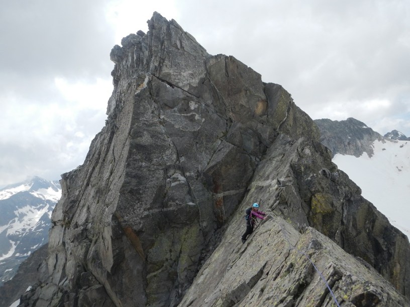 Cruzamos el paso afilado, hay un parabolt casi llegando al final. En este punto está el paso clave de la cresta. Según las reseñas IIIº+. Tiene una salida rara que tira un poco para atrás con presas muy romas.