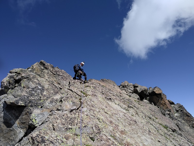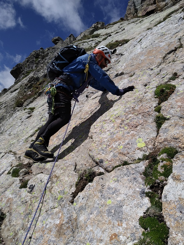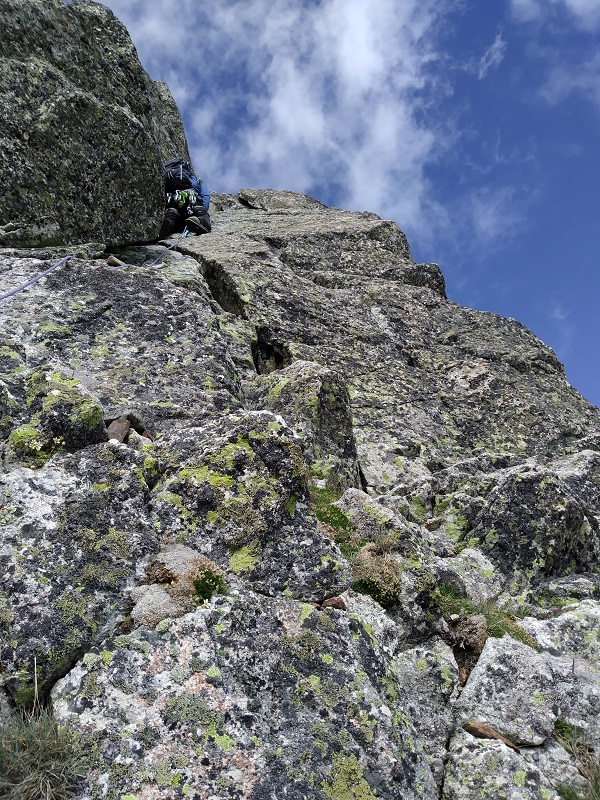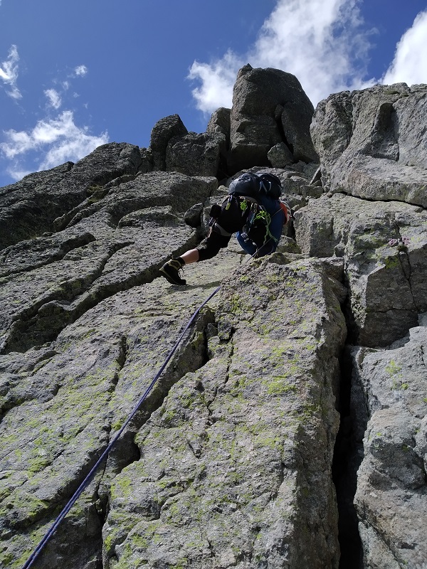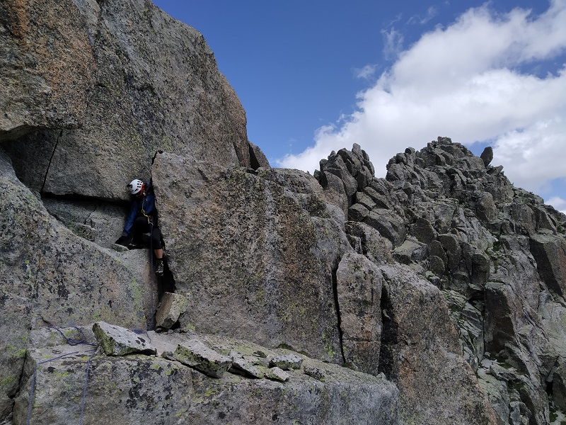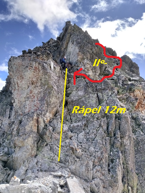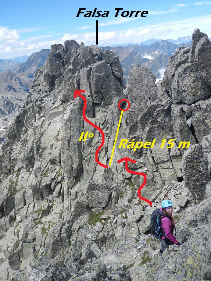 - Seguir bajo la arista en busca de una instalación de rápel mediante una travesía un poco expuesta, que es la que seguimos nosotros.