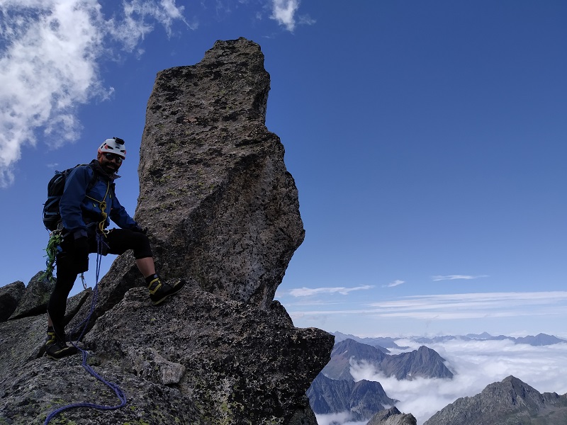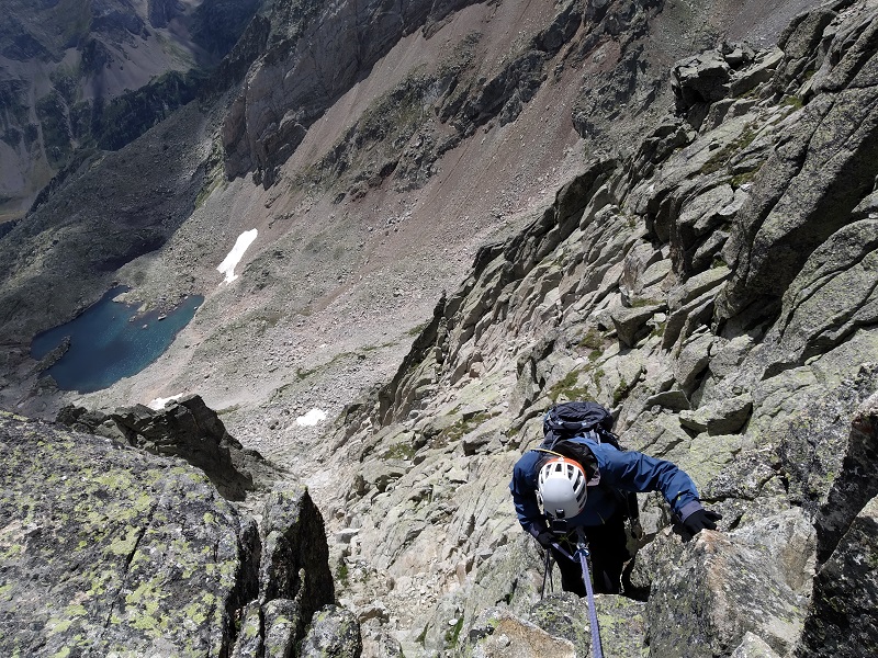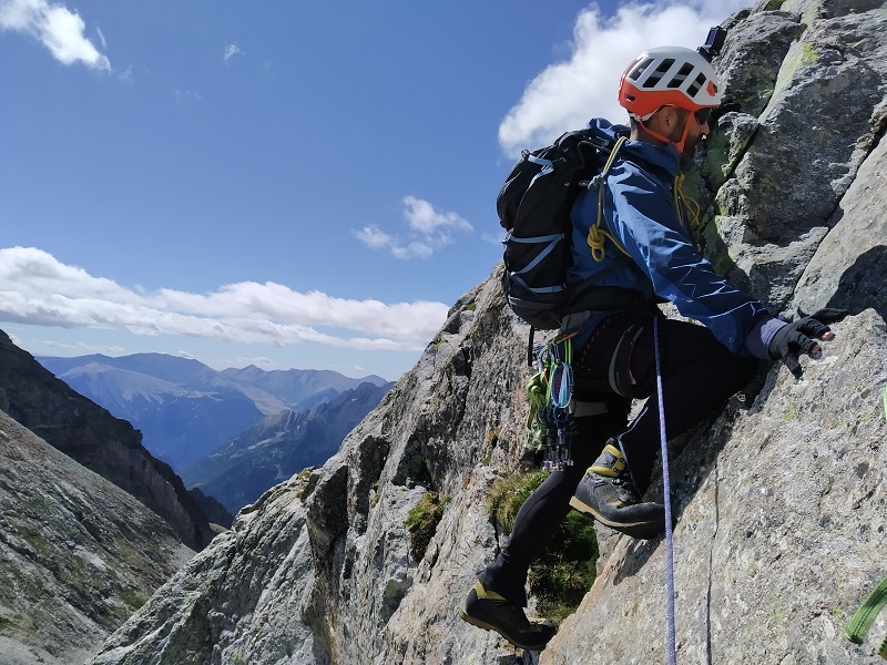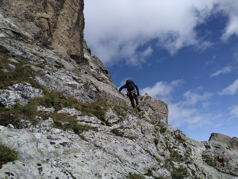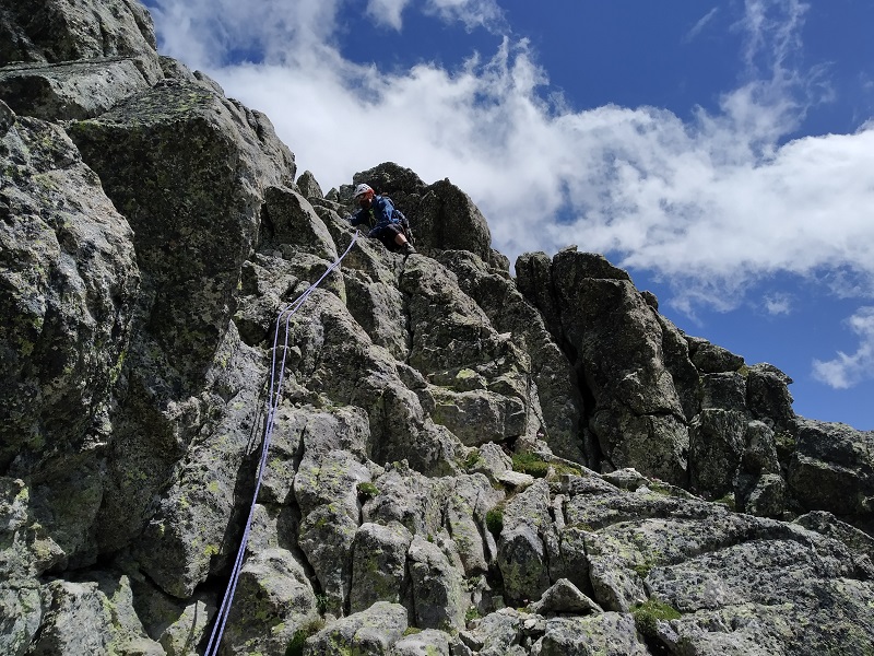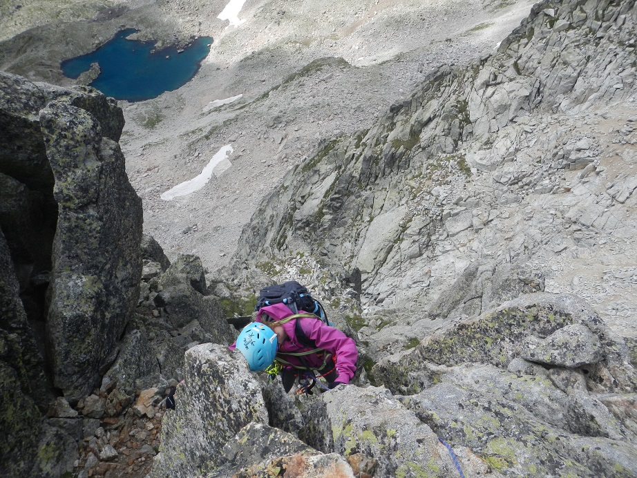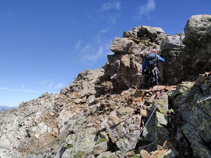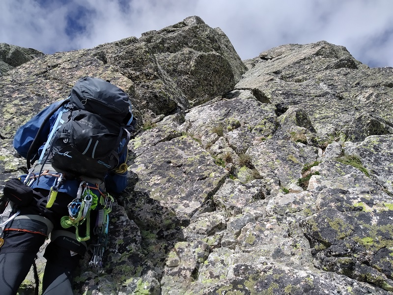 - Seguir bajo la arista en busca de una instalación de rápel mediante una travesía un poco expuesta, que es la que seguimos nosotros.