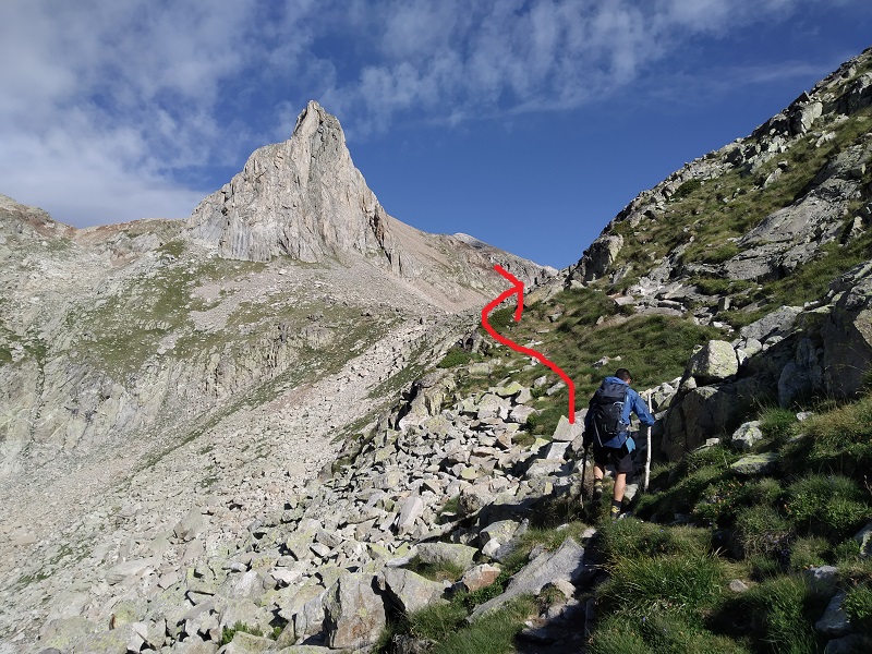 Y seguimos ascendiendo siguiendo siempre los hitos hasta poder ver la cresta y el puerto de Oô, donde nos deberemos dirigir.