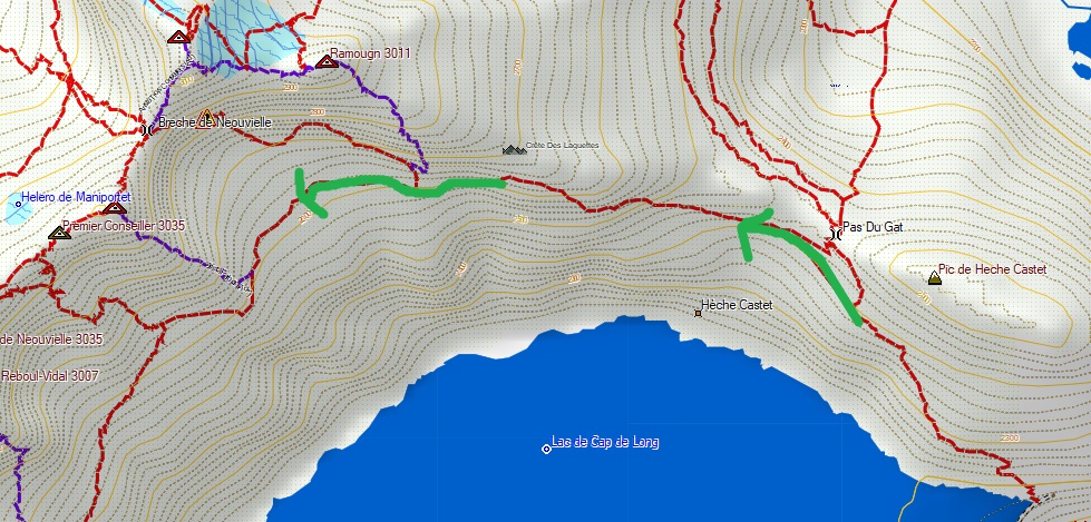 Por el mismo camino volvemos al pico Trois Conseillers y seguimos hacia el norte en dirección a la Brecha de Neouvielle.