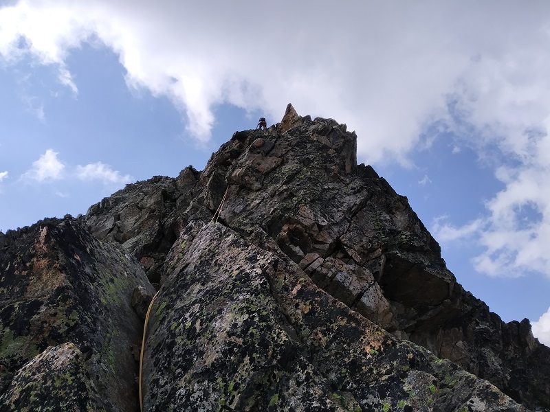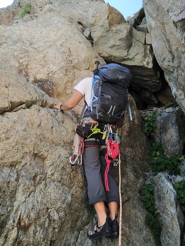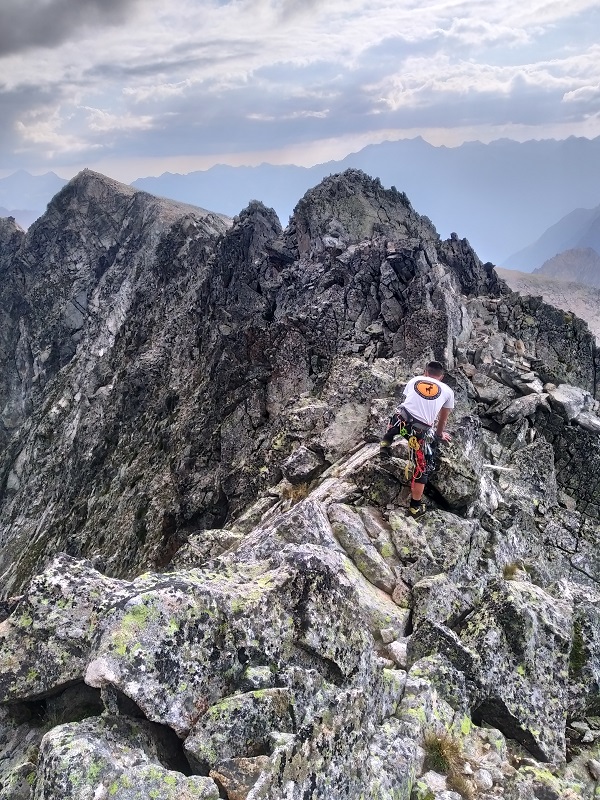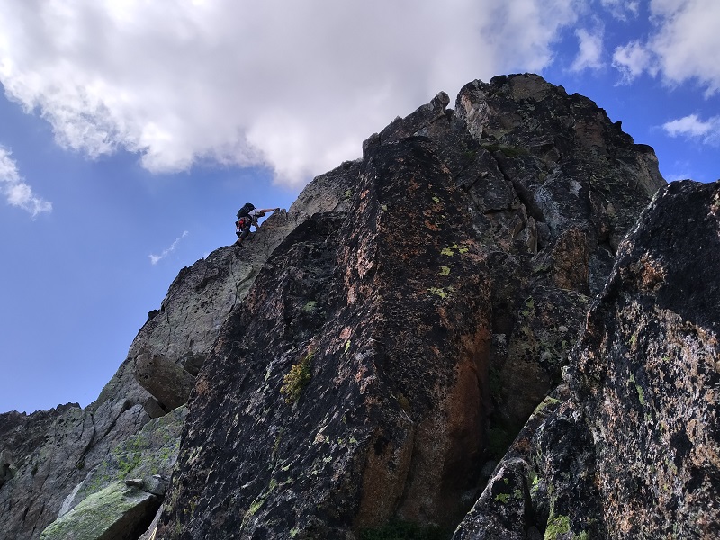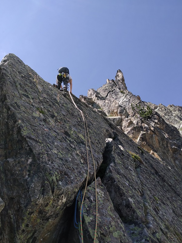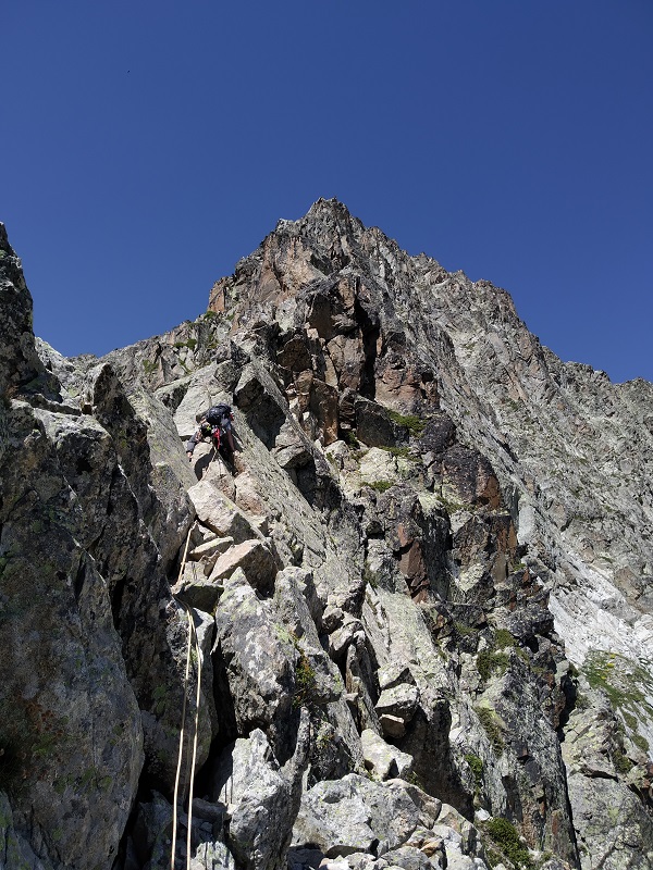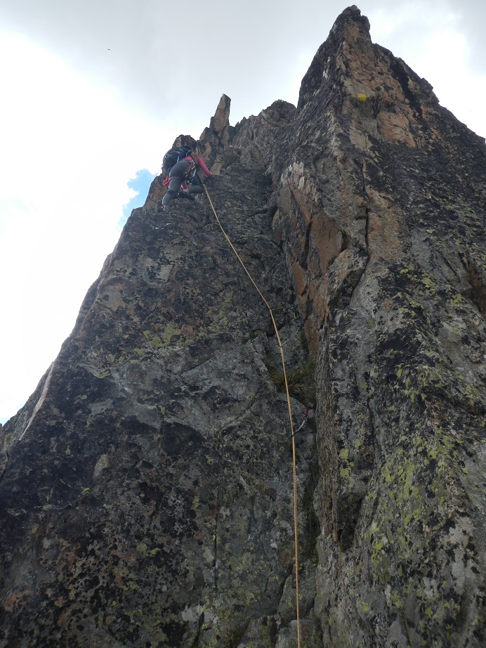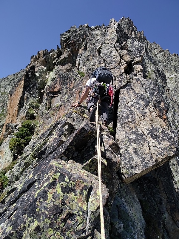 La arista a pesar de tener un buena roca posee algunos bloques inestables, lo que requerirá que extrememos las precauciones.