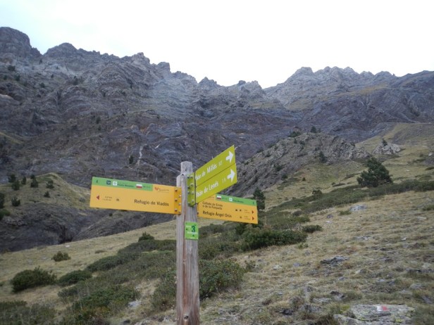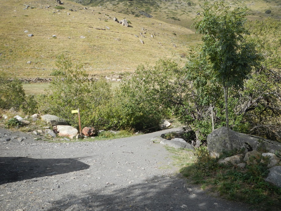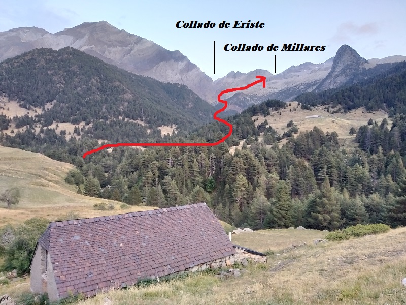 Pasamos las granjas hasta llegar a un desvío y tomamos el de la derecha en dirección descendente, hacia el ibón de Millares y collado de Eriste.