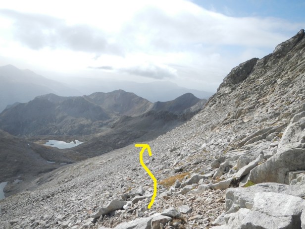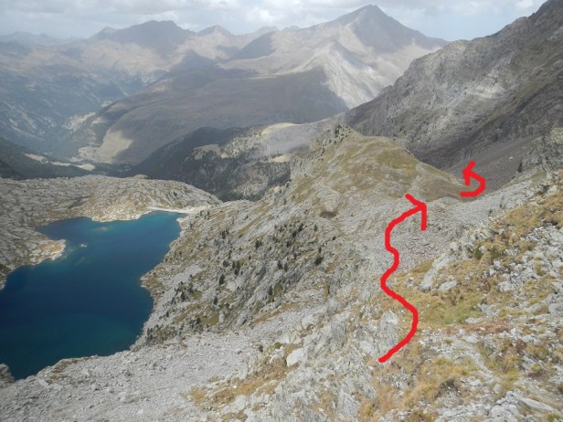 Y descendemos hasta la gran pedrera, dejando a nuestra izquierda la ruta de ascenso hasta el Gran Eriste.