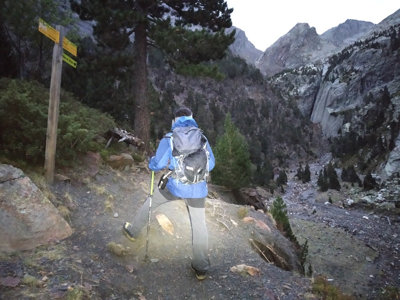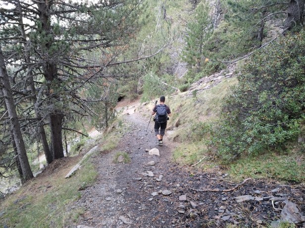 Por el mismo itinerario de subida, buscamos el GR, sin llegar al ibón de Millares.