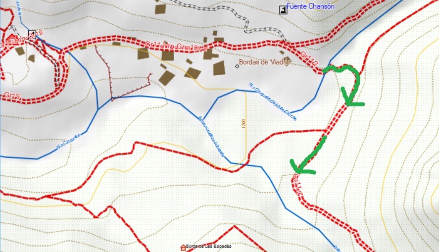 La seguimos sin dejarla hasta un desvío que indica a la derecha Ref. Viadós, entorno al Km 9.