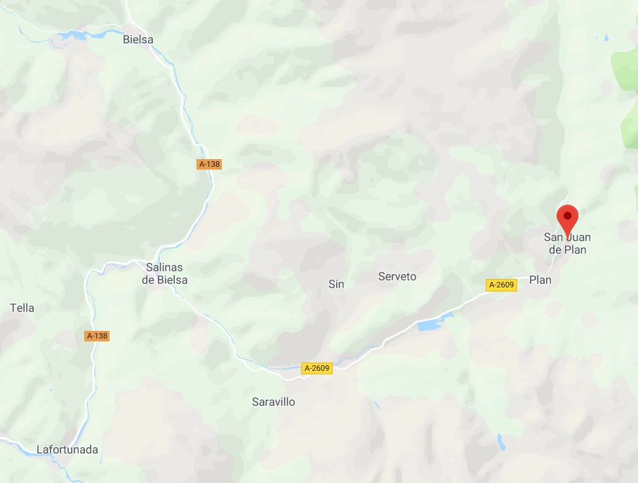 Para ello tomamos la carretera A-138 que nos lleva a Bielsa y la dejamos a la altura de Salinas de Bielsa, tomando la A-2609 a través de un desvío a mano derecha.