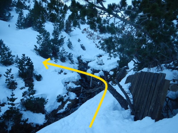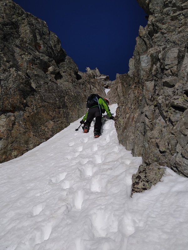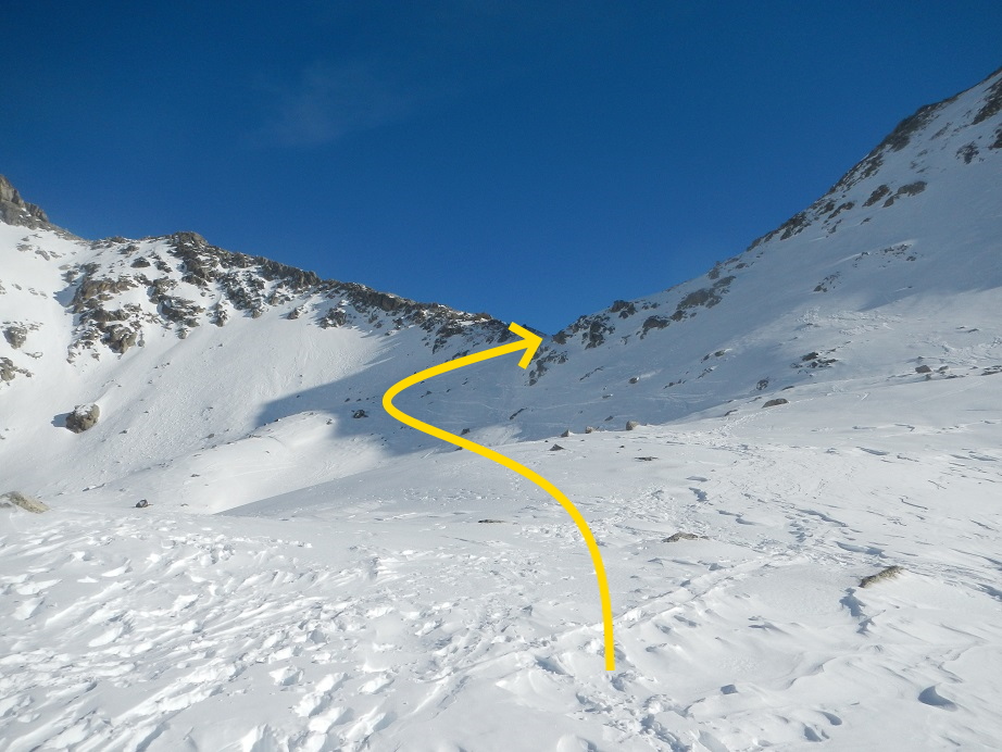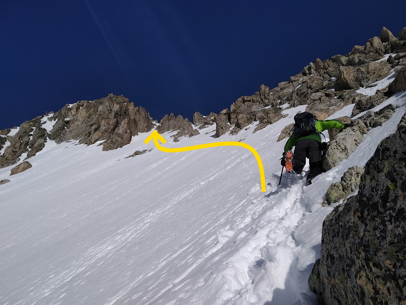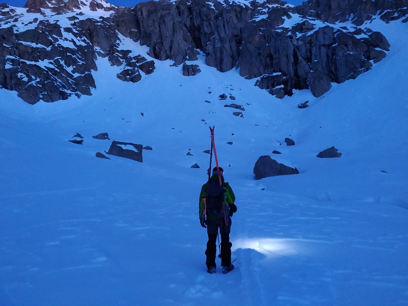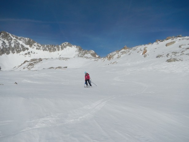 Pasado este, tendremos un buen descenso hasta el refugio, por una canal que va ganando inclinación.