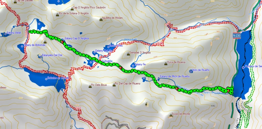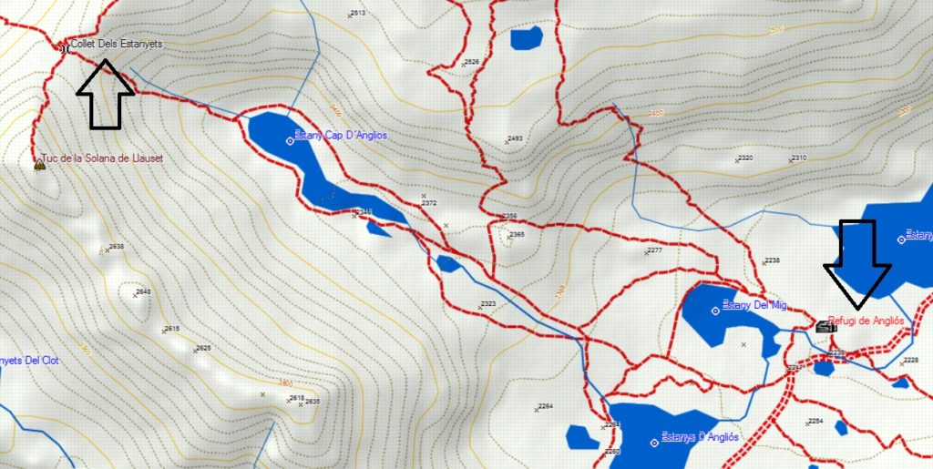 Dejamos el refugio de Anglios a nuestra derecha sin llegar a él e intentamos no bajar al Estany Cap Anglios para no perder altura.