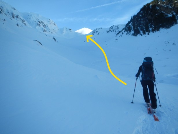 Quitamos de nuevo pieles y en breve descenso hacia la izquierda, llegamos a Cap de Llauset.