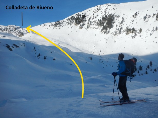 Avanzamos por pendientes moderadas en busca del primero de los collados, la Colladeta de Riueno.