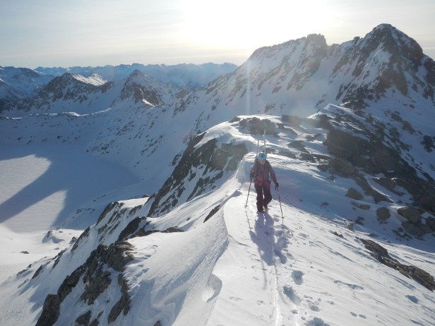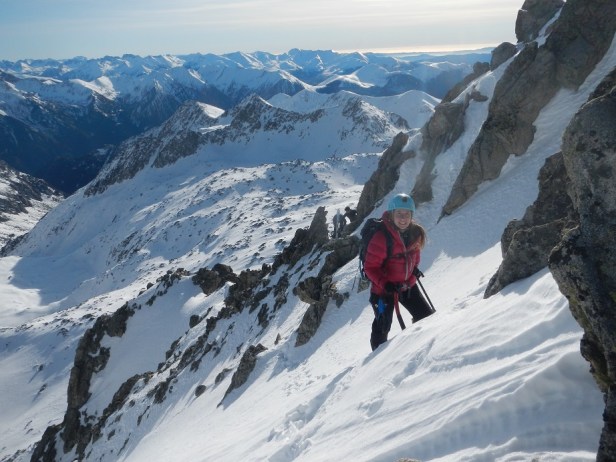 Llegados a este punto, ya podremos ver nuestro objetivo. No podemos descender todavía, y seguimos unos metros una arista fácil.