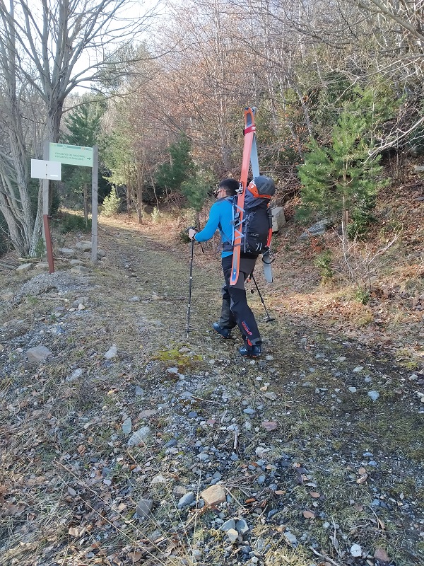Donde quitamos esquís y tomamos la senda que atraviesa el bosque.
