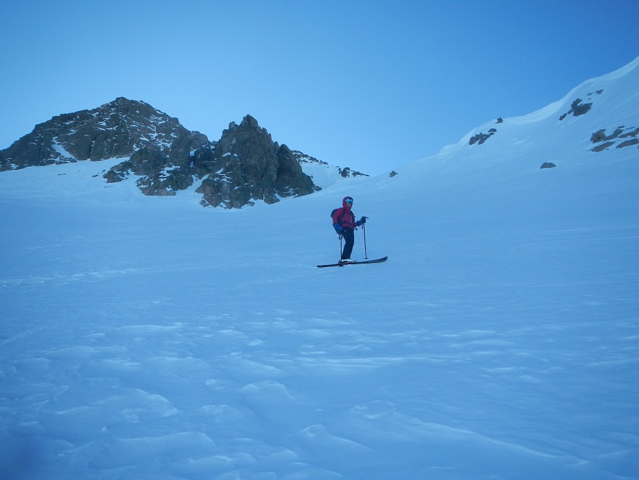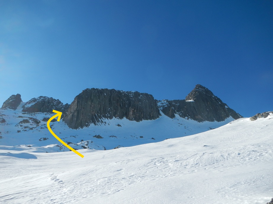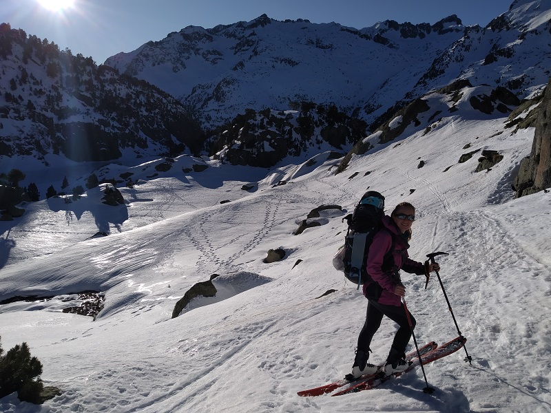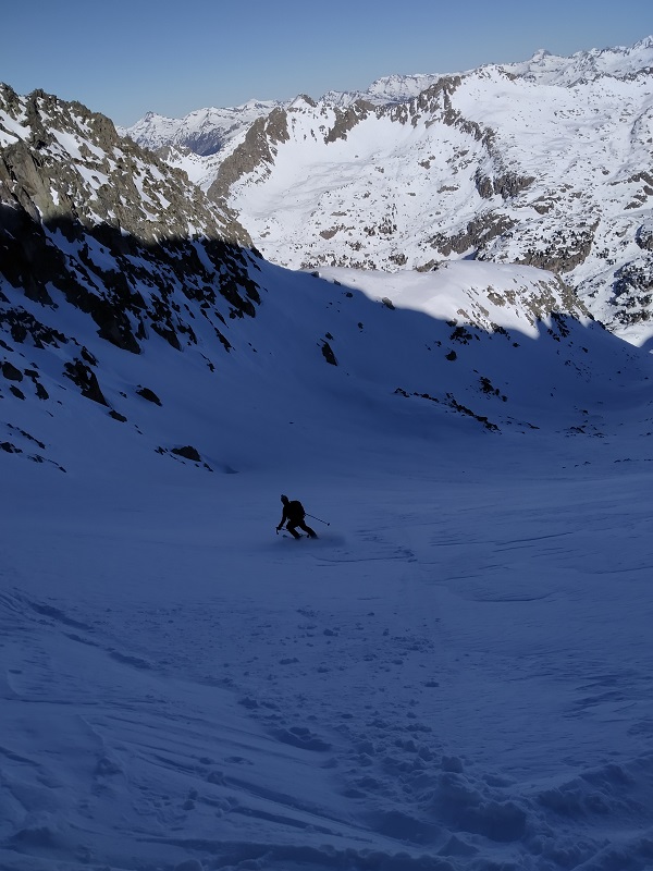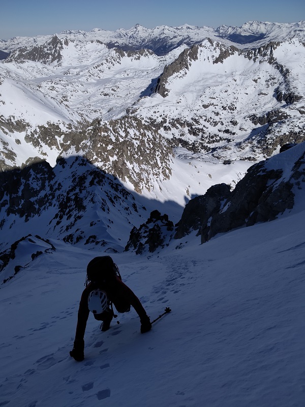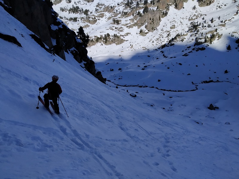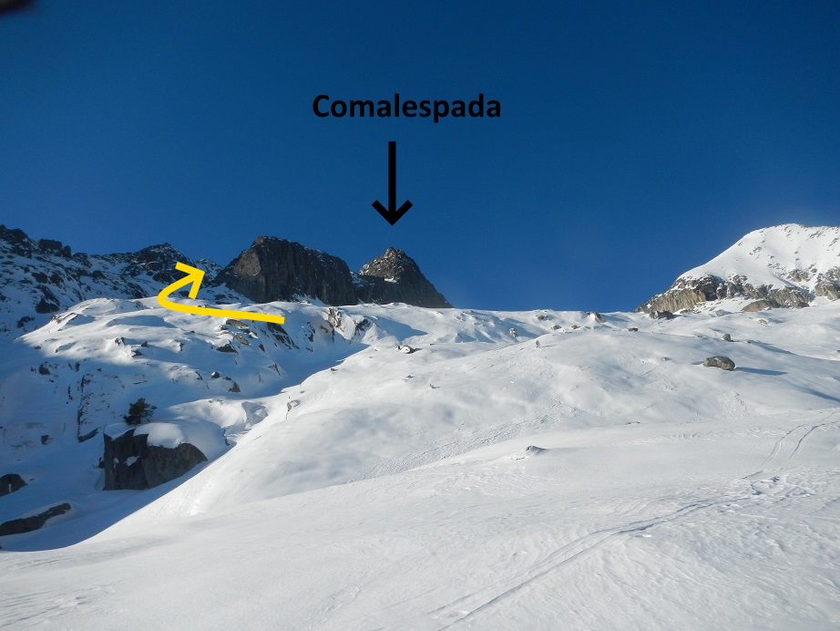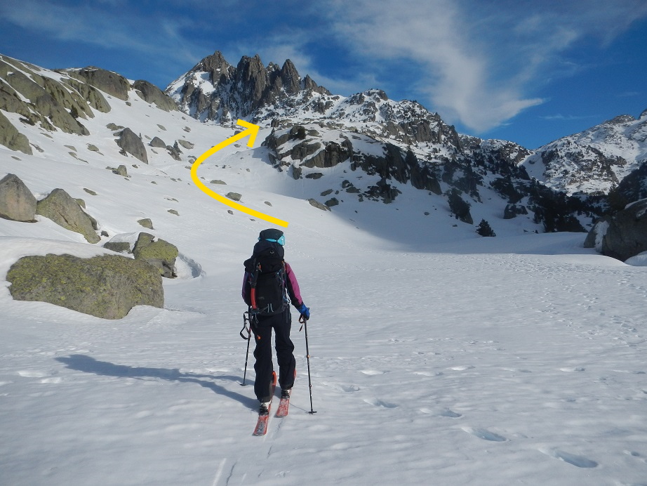 Superada esta, ya veremos la pala que nos lleva al collado de Arenós, punto donde dejamos los esquís.