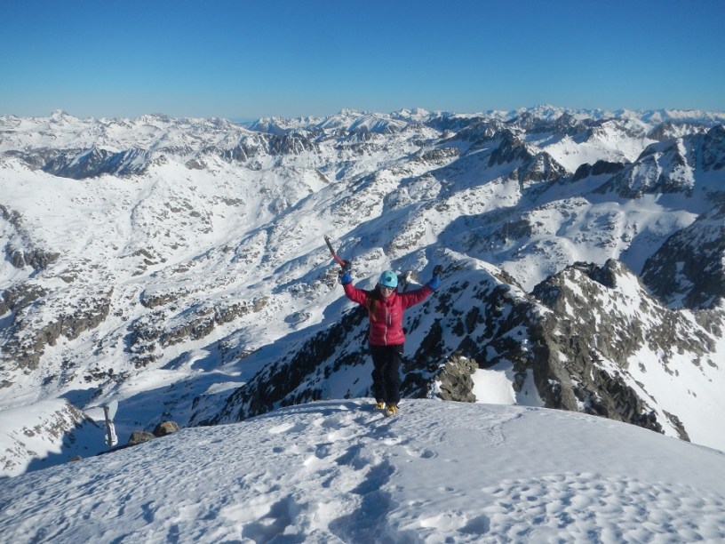 DIFICULTAD ALPINA: PD-, corredor cimero con unos 45º-50º en su parte final.