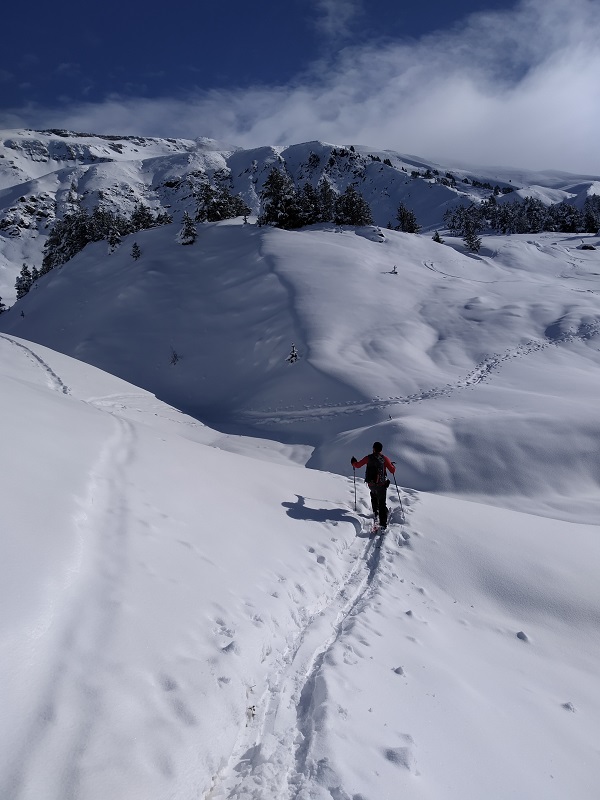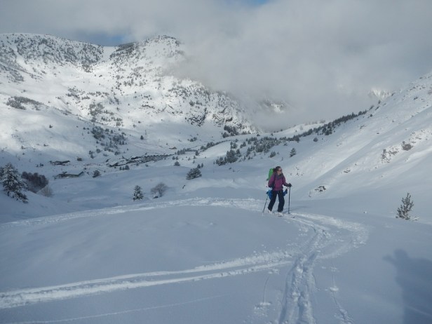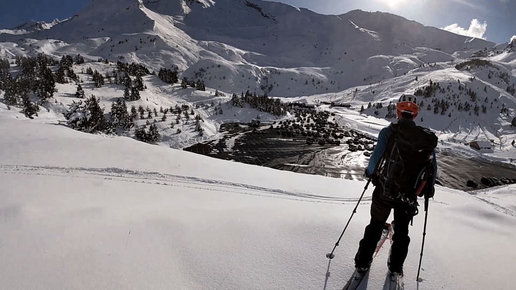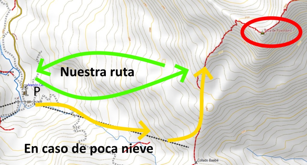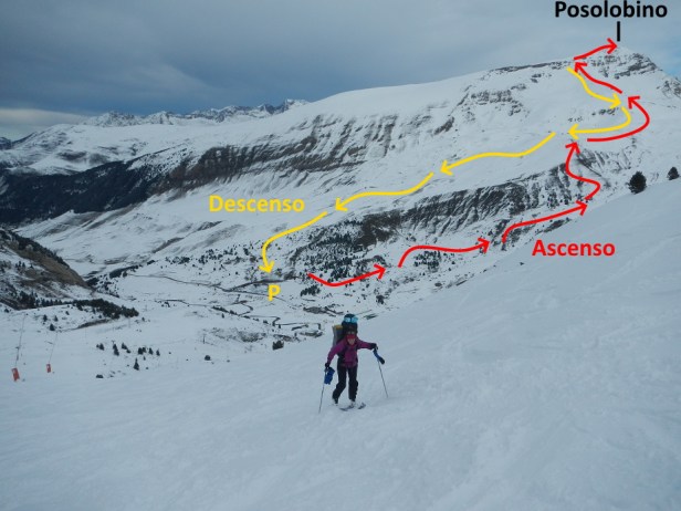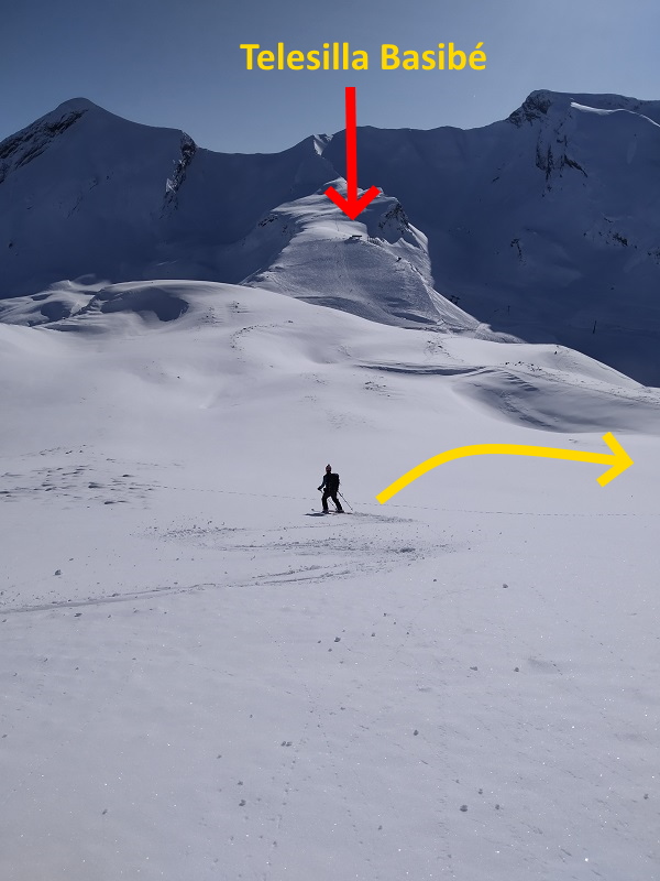 En nuestro caso encontramos unas condiciones perfectas, pero si hay poca nieve en cotas bajas se pueden aprovechar las pistas de la estación que ascienden por el telesilla Basibé para ganar altura y luego desviarnos al norte.