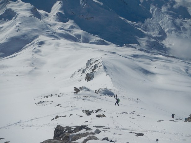 En los últimos metros, con algo de roca descalzamos esquís.