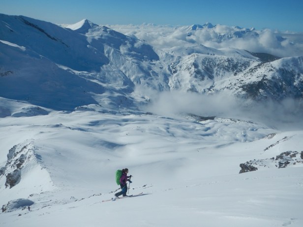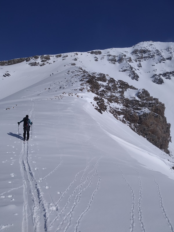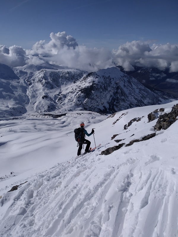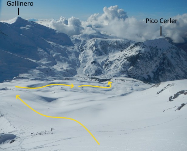 DIFICULTAD ESQUÍ: Media, por la pala que asciende a la cresta cimera. Resto fácil.