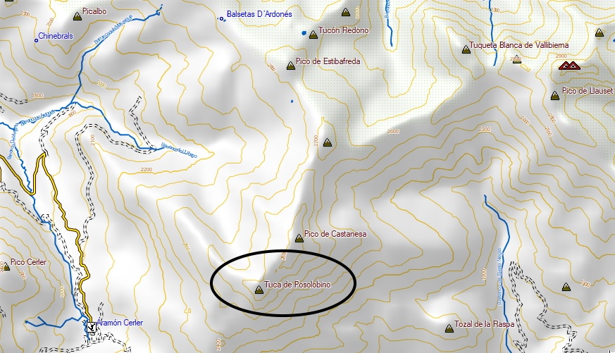 La cumbre del Posolobino está ubicada al sur del macizo de la Maladeta, en el entorno de la estación de esquí de Cerler.