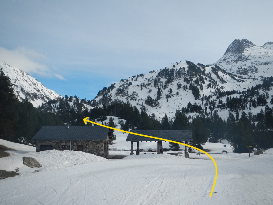 Seguimos la pista de esquí de fondo hasta la Besurta, donde esta termina y nos desviamos a la izquierda dejando el camino que lleva a Aigualluts.
